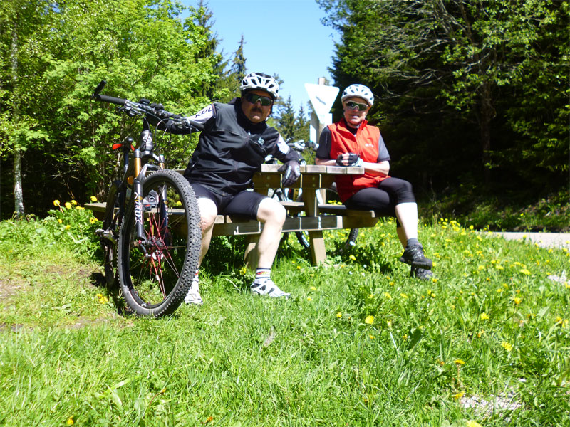 Wieder mal ein Wegweiser!Wir erreichen Sie nach einer Abfahrt den Löchlesbrunnen und fahren dann weiter vorbei am Wildgehege uns immer rechts von Tonbach haltend vorbei am Jägerbuckel bis wir nach einer Steigung die Abzweigung in Richtung Sattelei erreichen.Nach einigen weiteren Höhenmetern erreichen wir die Sattelei und kehren erst mal bei sonnigen 25 Grad ein und geniessen den Mittag. Bis zu unserer Unterkunft müssen wir es dann nur noch bergab laufen lassen und sind nach 15 Minuten zuhause.
