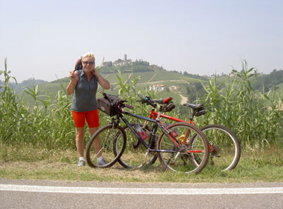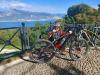 Blick von S. Zeno di Montangna über den SeeHeute ging es von unserer sehr schönen Unterkunft dem Can Barbini oberhalb von Garda hoch in das Vorland des Monte Baldo. Wie schon vermutet, haben wir den vorher geplanten Weg nicht so ganz erwischt, aber trotzdem erreichen wir nach ungefähr 6 Kilometern Albisiano obwohl wir eigentlich Marciaga anvisiert hatten. Scheinbar sind wir eine Strasse zu spät hoch gefahren, aber egal so haben wir schon einige Höhenmeter mehr hinter uns gebracht. Von Albisano geht es dann weiter immer über zahlreiche aber sehr gut zu fahrende Serpentinen hoch bis wir dann S. Zeno di Montagna erreichen. Hier geniessen wir einen wunderschönen Ausblick über den südlichen Teil des Gardasees.